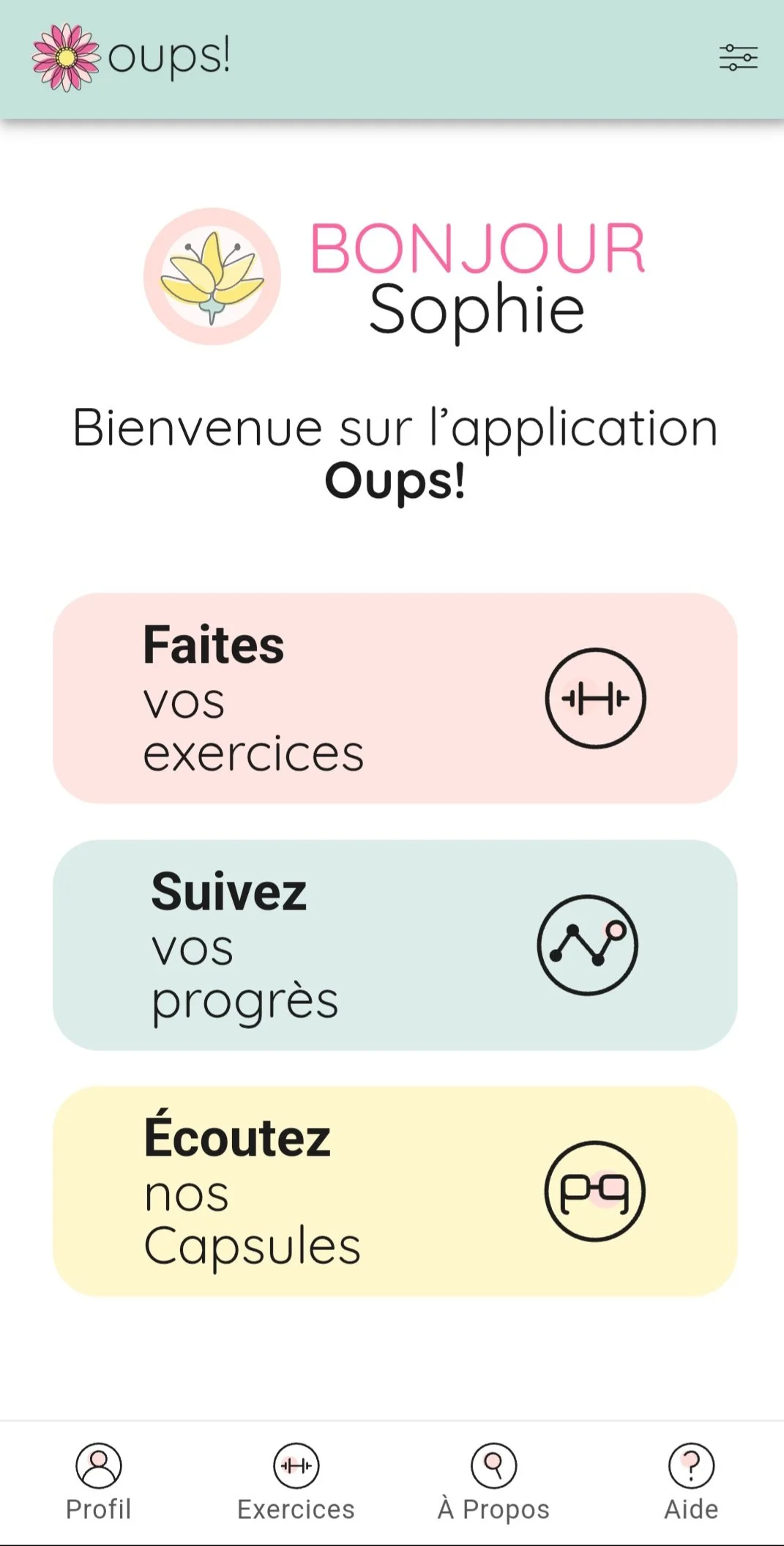 The Oups! mobile app offers a pelvic floor muscle exercise program validated by our randomized clinical trials. It offers :