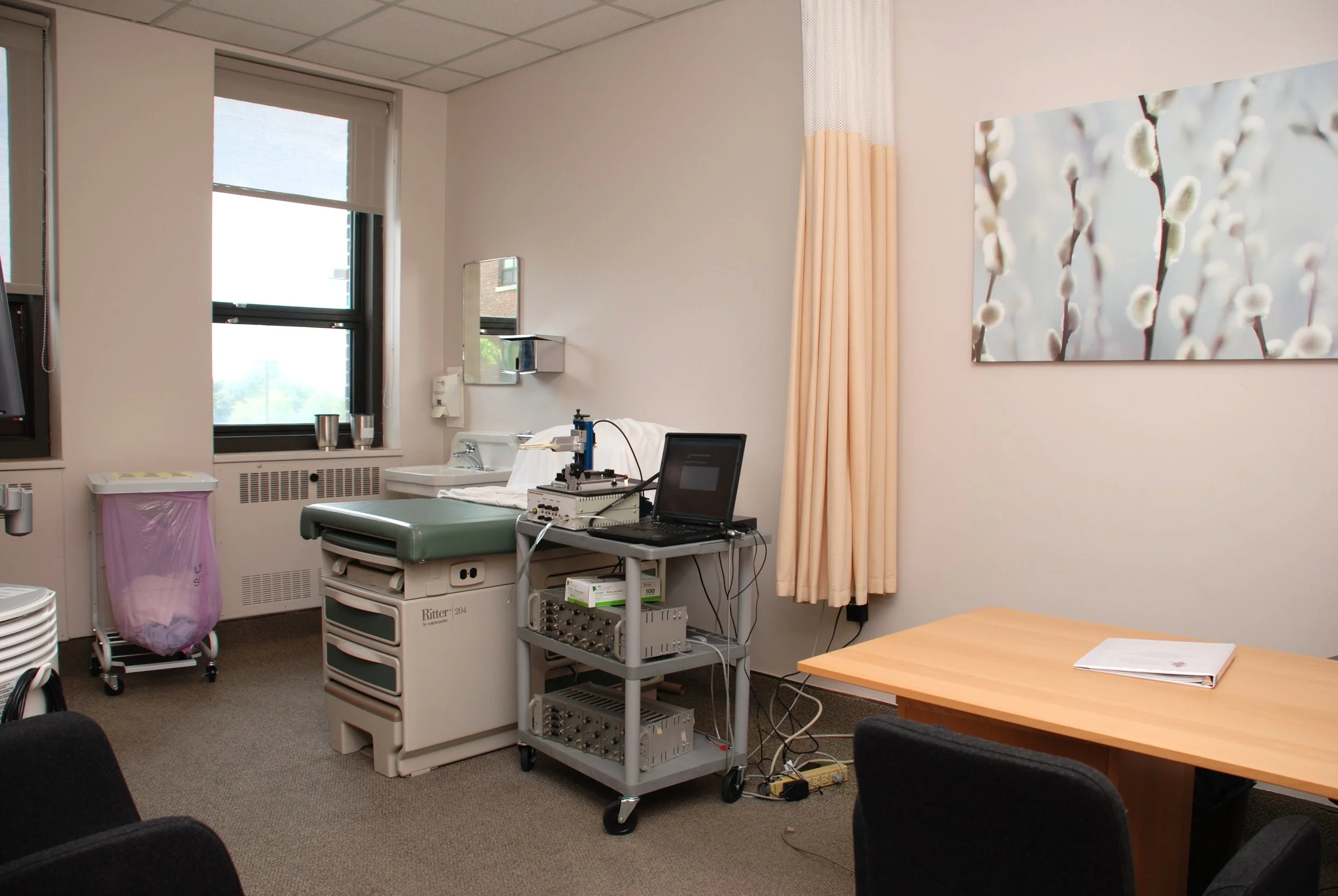 The lab was first established through Canadian Foundation on Innovation (CFI) infrastructure grants of $208K (2007), $245K (2014) and $200K (2018), which ensured access to cutting-edge measuring instruments and equipment. Supported by CRIUGM spaces and utilities, Dr. Dumoulin’s laboratories comprises three evaluation/treatment rooms, an equipment disinfecting/sterilization room, a gym equipped with mirrors, parallel bars and a virtual-reality rehabilitation room with 10 dance mats/computers stations. Other key equipment include three ultrasound scanners with perineal and endo-vaginal 3D/4D probes to assess pelvic floor muscle morphometrics and vascularity, two pelvic floor muscle dynamometers to assess pelvic floor muscle function, and two biofeedback/electrical stimulation rehabilitation units for pelvic floor muscle training.