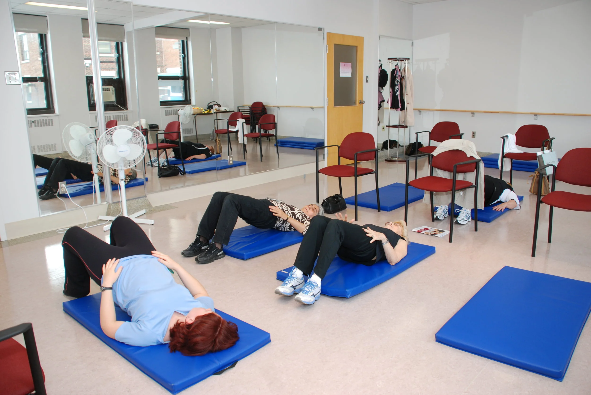Pelvic floor muscle exercise classes for the treatment of urinary incontinence and other pelvic floor dysfunctions take place in the laboratory’s gym. They include an educational component on relevant urogynecological pathologies and pelvic floor muscle rehabilitation. Pelvic floor muscle rehabilitation includes strengthening, endurance and coordination exercises in different positions: lying down, on all fours (in a table-top position), sitting and standing. Along with these classes, participants receive a home exercise program.